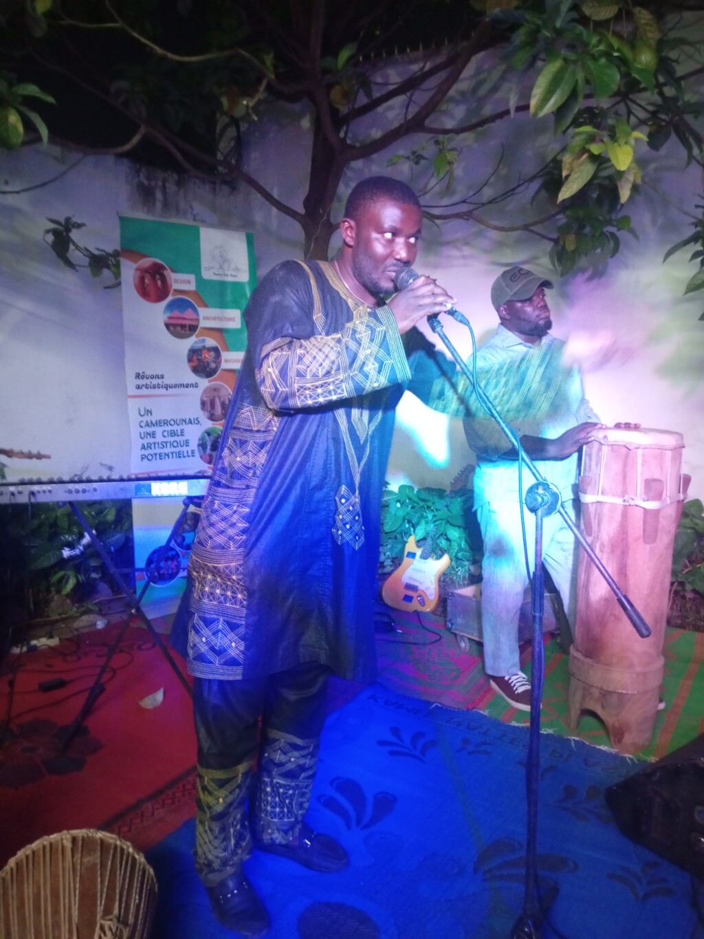 C’est une soirée riche en couleurs et en sons, animée de bout en bout par Chorus Architecture et JB au tambour, tam-tam et djembé et musique portée par Grimo Art au micro: ils sont tous membres du Foumban Art Room.