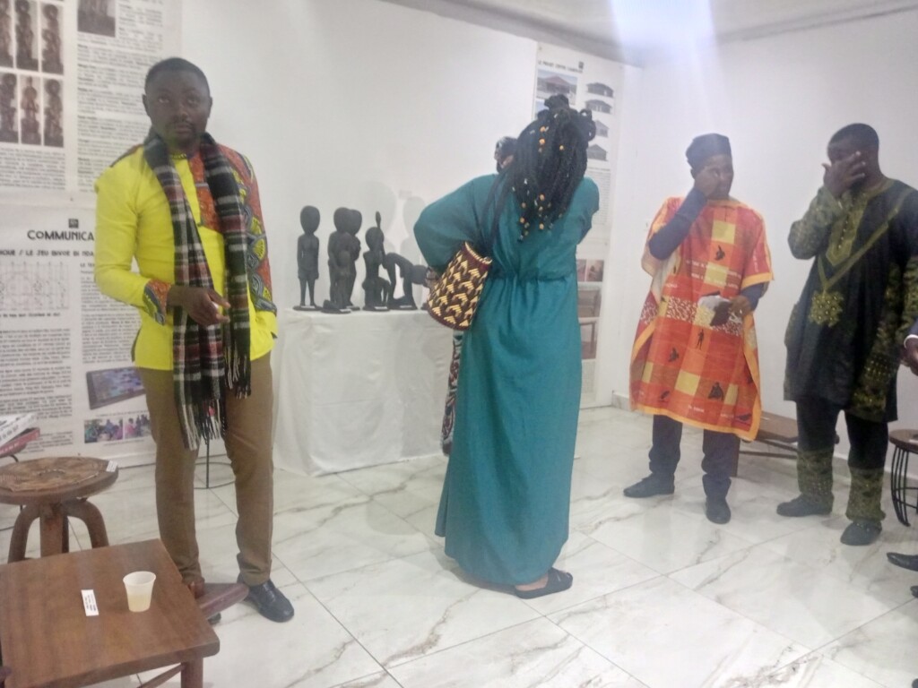 Elle est suivie par le Dr Fortuné Bengono, président du Foumban Art Room, une association culturelle basée à Foumban (Ouest Cameroun) qui travaille à promouvoir les valeurs artistiques et culturelles des quatre aires culturelles du Cameroun. « Pensée comme un Think Tank de réconciliation du Camerounais avec sa culture, son patrimoine et son identité profonde, l’association regroupe des professionnels de l’art, des académiciens et des praticiens, qui mènent la recherche pour non seulement ressusciter des valeurs et des pratiques artistiques et culturelles camerounaises, mais militent pour une pratique de l’art qui tienne compte des besoins réels des Camerounais en se mettant au service de la promotion de leur patrimoine culturel. Ce soir, l’exposition n’est qu’une fine présentation de nos réalisations et un moyen de faire des visiteurs les ambassadeurs de notre initiative », ponctue-t-il avant d’inviter le public à le suivre pour découvrir l’exposition.